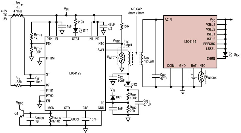 图 1:凭借其全面的功能特性,LTC4124 无线锂离子充电器简化了 WPT 的实现。(图片来源:Analog Devices)