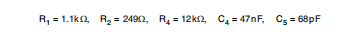 2.选择增益(R4/R1)以获得所需带宽(BW),即: