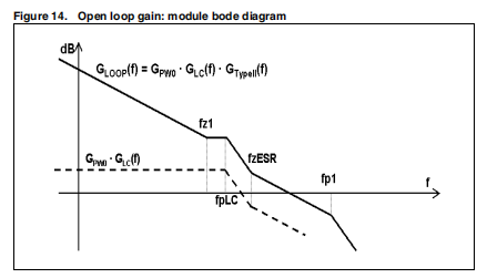 在图14中,PWM和LC滤波器传递函数的Bode图(GPW0·GLC(f))得到了开环增益(GLOOP(f)=GPW0·GLC(f)·GTYPEII(f)。
