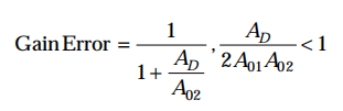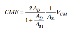 有限运放增益的另一个影响是不希望的共模输入馈通。将A01定义为运算放大器A1的开环增益,则由该效应引起的输出共模误差(CME)约为:
