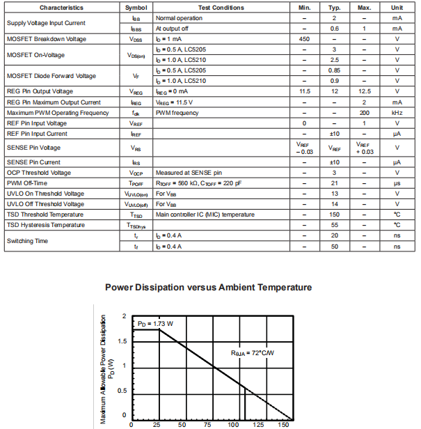 LC5200系列是一款离线式LED驱动集成电路,包括主控制器集成电路(MIC)和功率MOSFET。它的高压能力允许直接连接范围广泛的电源电压范围从25至400 V(推荐)。LC5200使用常量驱动LED的当前模式。包装是一种标准8针DIP,移除销7以获得更大的爬电距离从电源插脚。