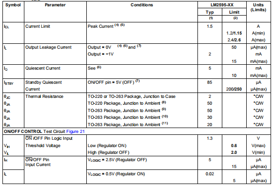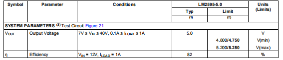 LM2595-5.0电气特性