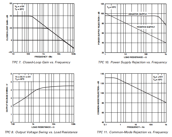 在从地面到0.8 V的区域,OP490的电压增益等于数据表规格。在整个电压范围内保持电流源输出能力。