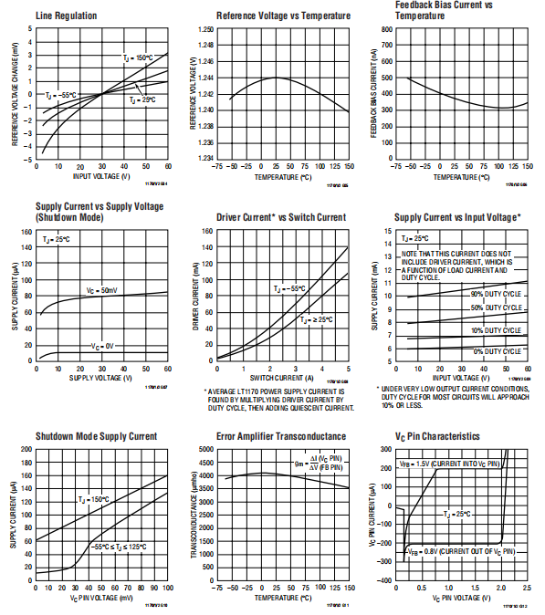 注3:在hi夹具中用VC测量,VFB=0.8V。LT1170的ISW=4A,LT1171为2A,LT1172为1A。