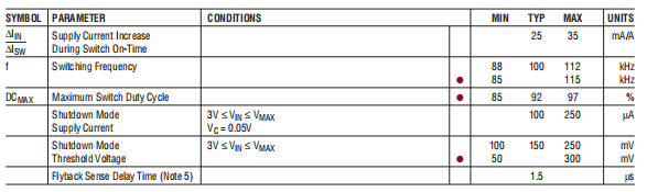注2:LT1170/71/72(电流)的最小有效开关“打开”时间仅限值)为≈0.6μs。这限制了在输出短路。降压模式和逆变模式输入电压输出短路条件限于: