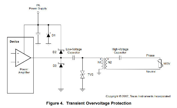 电力线通信通常位于对连接到交流线路的电气部件来说非常恶劣的工作环境中。如果没有提供适当的保护,来自电气异常(如闪电、电容器组切换、感应开关或其他电网故障条件)的噪声或浪涌会损坏高性能集成电路。通过使用各种技术来保护设备,功率放大器可以在最恶劣的条件下生存。