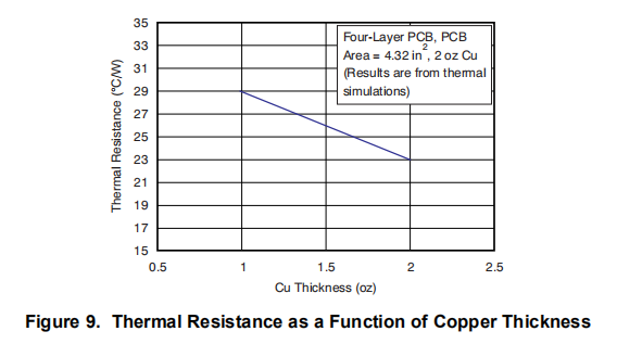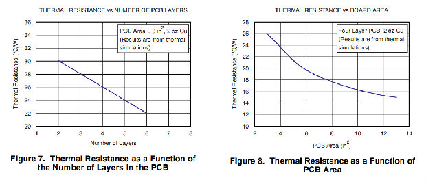 增加PCB的层数、使用更厚的铜以及增加PCB的面积都是改善热传播的因素。图7到图9显示了热阻性能作为这些因素的函数。