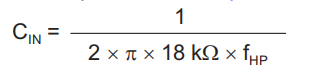 外部电容器(CIN)在传递函数中引入了单极高通特性。由于放大器固有的低通传递函数,CIN和放大器组合具有带通响应。高通截止频率的值由CIN决定,CIN与放大器电路的输入电阻发生反应。公式2计算该值: