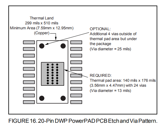 始终建议将PowerPAD焊接到PCB ia,即使是低功耗的应用程序也是如此。这为引线框架模架垫和PCB之间提供了必要的热连接和机械连接。