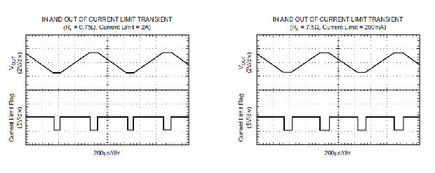 提供两个标志:一个用于警告热应力,另一个用于电流限制条件。热标志引脚可连接到使能引脚,以提供热关机解决方案。