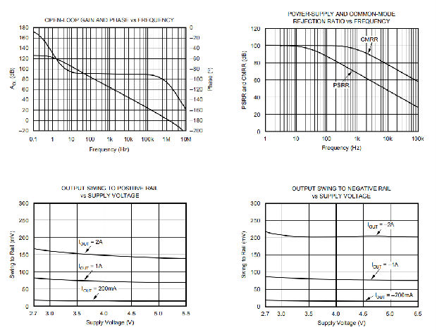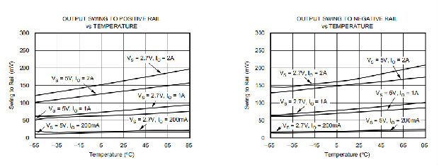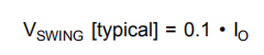 OPA569有一个AB类输出级,带有用于实现轨对轨输出摆动的共源晶体管。它被设计成能够摆得比其他现有的线性放大器更靠近轨道,即使输出电流水平很高。根据不同的输出电流要求,一种快速估算输出摆幅的方法是使用以下公式: