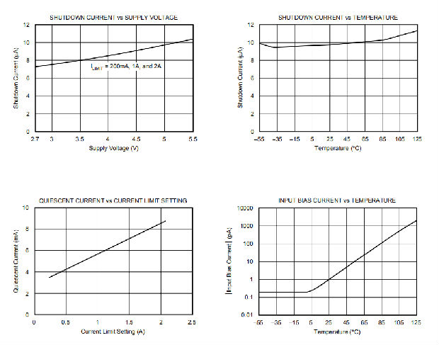 OPA569是一个低功率放大器,具有典型的3.4mA静态电流(电流限制配置为200mA)。静态电流随电流限值设置而变化-电流限值每增加200mA,就会增加0.5mA,如图3所示。