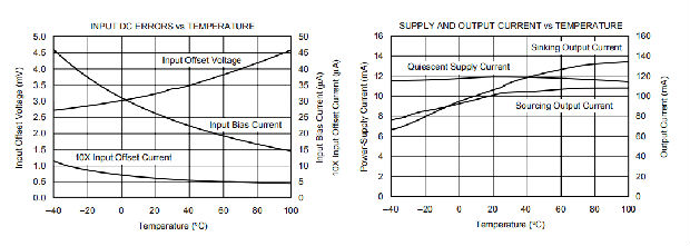 最低规定的输出电压和电流规格通过最坏情况下的模拟设定在最冷的温度极限。只有在冷启动时,输出电流和电压才会降低到保证表中所示的数值。当输出晶体管提供功率时,它们的结温会升高,降低它们的VBE(增加可用输出电压摆幅)和增加电流增益(增加可用输出电流)。在稳态运行中,由于输出级结温将高于规定的最低工作环境温度,因此可用输出电压和电流将始终大于超温规范中所示的值。