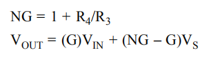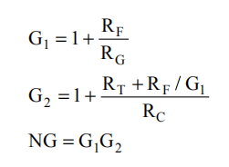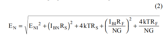 将该表达式除以噪声增益(NG=(1+RF/RG))将得到非逆变输入处的等效输入参考点噪声电压,如等式2所示: