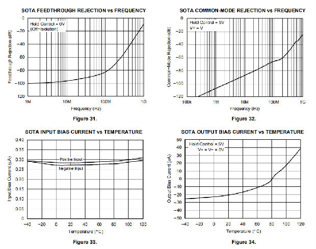 开关级输入对保持控制命令的低转换率性能不敏感,并与TTL/CMOS逻辑电平兼容。在TTL逻辑高的情况下,比较器处于活动状态,比较两个输入电压并相应地改变输出电流。在TTL逻辑低,比较器输出被关闭,显示出对保持电容器的非常高的阻抗。