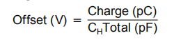 开关电荷输出的电流源处电容器上感应的附加偏移电压或开关瞬态可通过以下公式确定: