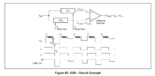 图52是CDS电路的框图。两个采样保持放大器和一个差分放大器构成相关双采样器。