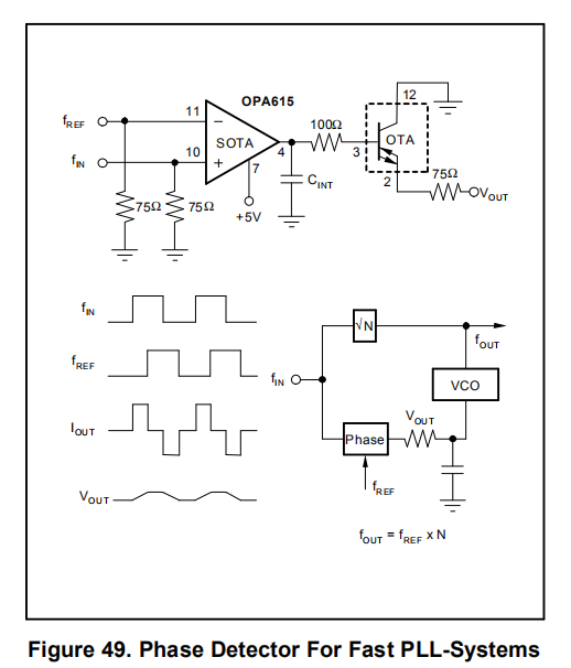 图49显示了用于快速锁相环系统的相位检测器的电路。作为一个参考脉冲,比较器在这个脉冲串中作为一个参考脉冲。这个电压然后由OTA缓冲,并馈送到VCO。