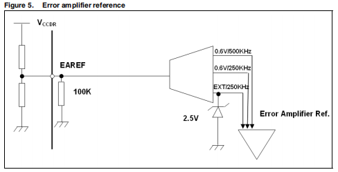从VCCDR的80%到95%的VEAREF->VREF=0.6V/Fsw=500KHz