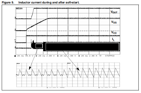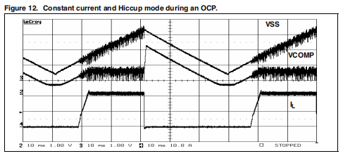 在恒流保护中,电流控制回路限制误差放大器的输出值(comp),以避免其饱和,从而在输出返回时更快地恢复法规。图12。显示设备在过电流条件下的行为在软启动阶段也会持续。