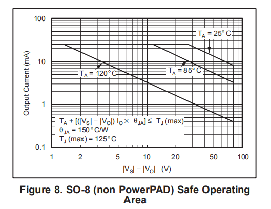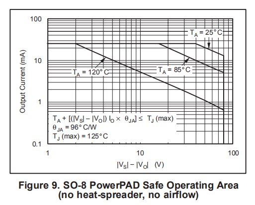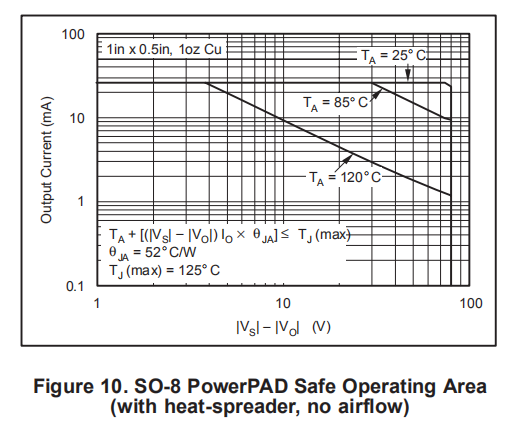 这超出了最大额定值,不建议使用。如果在该区域操作不可避免,则需要散热器。要进一步了解SOA,请参阅应用程序公告SBOA022。