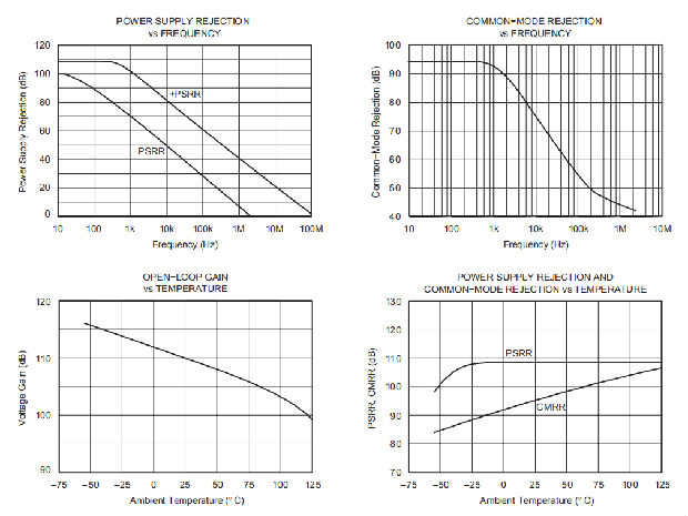 OPA445可在高达±45V或总电压为90V的电源下工作,具有优异的性能。在整个工作电压范围内,大多数特性保持不变。典型特性中显示了随工作电压显著变化的参数。