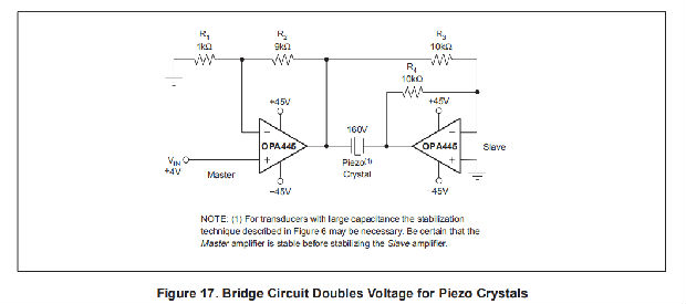 有些应用不需要相等的正、负输出电压摆幅。电源电压不需要相等。OPA445在电源之间的电压仅为20伏,电源之间的电压最高可达90伏。例如,正电源可以设置为80V,负极电源为−10V,反之亦然。