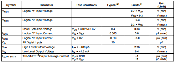 除非另有说明,否则这些规范适用于VDD=2.4至5.5V(1). 黑体限制适用于TA=TJ=TMIN至TMAX;所有其他限值TA=TJ=+25°C,除非另有说明。