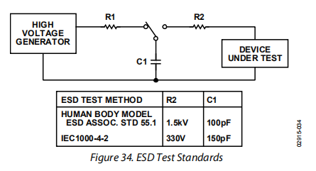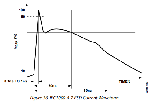 IEC 1000-4-2规定了四个符合性等级。ADM33xxE零件满足接触放电和气隙放电的最严格合规性水平。这意味着产品能够承受超过8千伏的接触放电和超过15千伏的气隙放电。