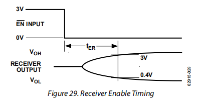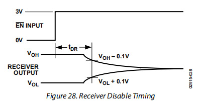 接收机具有施密特触发输入,滞后电平为0.14V。这确保了噪声输入和慢转换时间输入的无误接收。
