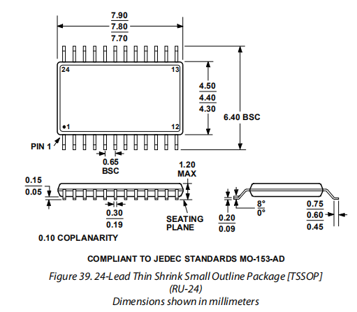 所有ADM33xxE设备均提供32引线5 mm×5 mmLFCSP WQ和TSSOP(28导联TSSOP中的ADM3307E、ADM3310E和ADM3311E;24导联TSSOP中的ADM3312E和ADM3315E)。ADM3311E也有28线的SSOP。