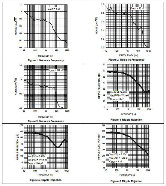 噪声有两种规定:斑点噪声或输出噪声密度是所有噪声源的均方根和,在调节器输出处,以特定频率测量(以1-Hz带宽测量)。就是这种噪音通常作为频率的函数绘制在曲线上。总输出噪声或宽带噪声为均方根和在特定的带宽上,通常是几十年的频率范围内的斑点噪声。必须注意计量单位。点噪声的测量单位为μV/√Hz或nV/√Hz和总计输出噪声以μVRMS为单位进行测量低压差稳压器的主要噪声源是内部基准。噪音可以一分为二方法:通过增加晶体管面积或增加内部基准电流。增加的该区域减少了将模具装配到较小包装中的可能性。增加内部参考增加总电源电流(GND引脚电流)。