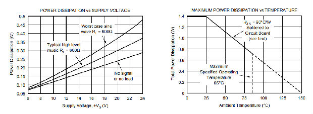 OPA604能够驱动600Ω负载,电源电压高达±24V。在高电源电压下工作时,内部功耗增加。典型的特性曲线,功率损耗与电源电压,显示静态耗散(无信号或无负载)以及最坏情况下的连续正弦波耗散。连续的高电平音乐信号通常产生的耗散比最坏情况下的正弦波要小得多。