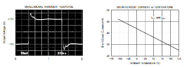 输出电流被内部电路限制在25°C时约为±40毫安。如典型曲线所示,极限电流随温度升高而降低。