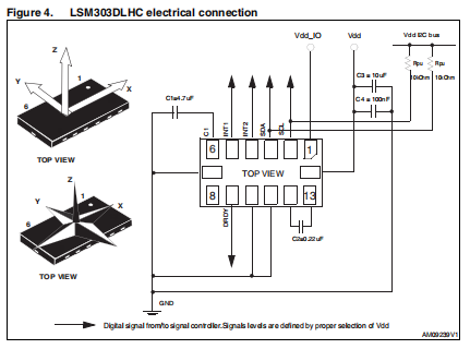 这个数字接口,专用于线性加速度和磁场信号,是能够使用标准电源(Vdd)或专用电源操作(视频显示器)。