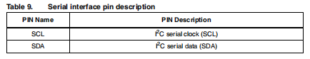有两个与I2C总线相关的信号,串行时钟线(SCL)和串行数据线(SDA)。双向发送线路用于接收数据到/从接口。