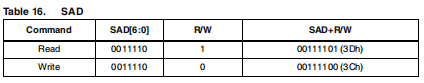 对于磁性传感器,默认(出厂)7位从机地址为0011110xb。从机地址由一个读/写位完成。如果位为“1”(读取),则重复启动(SR)条件必须在两个子地址字节之后发出;如果位为“0”(写入)主站向从站发送,方向不变。表16解释了悲伤是沉着的。