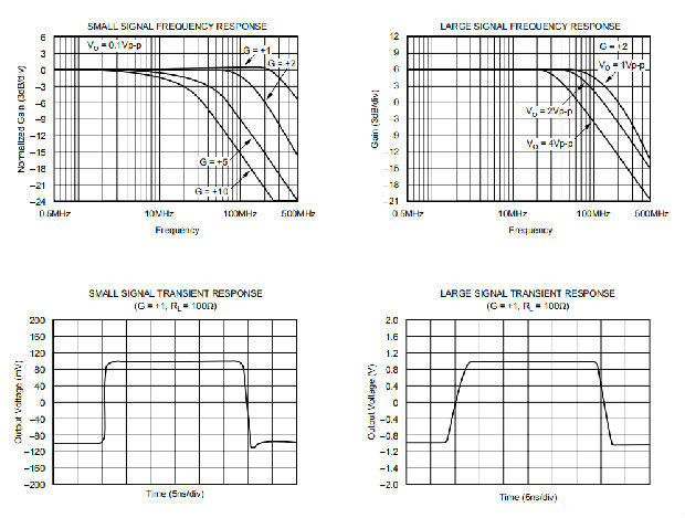 TA=+25°C,VS=±5V,RL=100Ω,RF=402Ω,G=+2,除非另有说明。RF=25Ω,增益为+1。