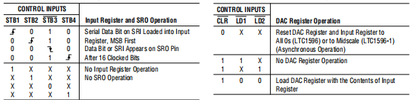 表1。LTC1596/LTC1596-1输入寄存器 表2。LTC1596/LTC1596-1 DAC寄存器