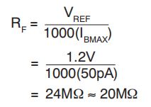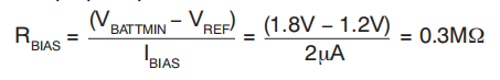 6、 计算RBIAS:该电路的最小电源电压为1.8V。REF1112的电流要求为1.2μa(最大)。为REF1112提供2μA的电源电流可确保正常工作。因此:
