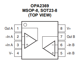 OPA369(单一版本)采用SC70-5软件包提供。OPA2369(双版本)同时提供MSOP-8和SOT23-8包。