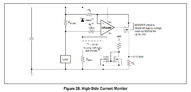 (1) 齐纳额定运放电源能力(即,5.1V的OPA369)。