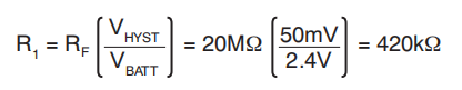 2、 选择磁滞电压VHYST。对于电池监测应用,50mV就足够了。