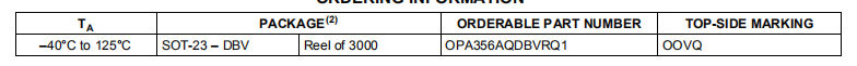 OPA356在SOT23-5封装中提供,其规定温度范围为-40°C至125°C。