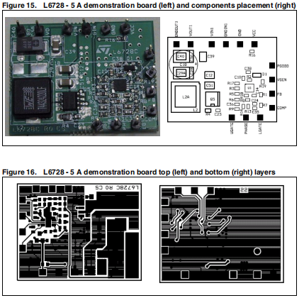 L6728演示板在两层PCB上实现了降压DC/DC变换器显示了设备在通用小电流应用中的操作。输入电压范围从5 V到12 V总线,输出电压固定在1.25 V应用可提供超过5A的输出电流。开关频率为300千赫。