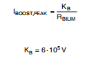 最大允许电流限值为5 A,由此产生最小设置电阻RBILIM>120千欧。电源开关的最大保证有效值电流为2臂。这个电流限制的工作原理是将COMP引脚电压与RBILIM成比例。峰电感器电流被限制在通过斜率补偿降低的阈值以上贡献。在升压变换器中,通过内部MOSFET的r.m.s.电流取决于输入和输出电压,根据方程式15A(DCM)和15B(CCM)。