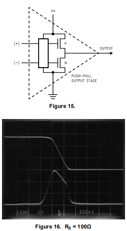 在有推挽输出的数字电路和比较器中,直通是一种常见现象舞台。当信号同时应用于N通道和P通道输出时,会发生这种情况一个关闭另一个打开的晶体管。(参见图15)如果其中一个输出设备有轻微响应速度比另一个快,快的一个可以在另一个关闭之前打开。在很短的时间内允许电源电流直接流过两个输出晶体管。结果是一个短暂的峰值电流消耗从供给。