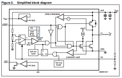 吨相:通过短路LX,能量从电池转移到电感器节点通过N通道电源开关接地。如果电流电感器中的电流达到750mA或在最大接通时间设置为5μs后。