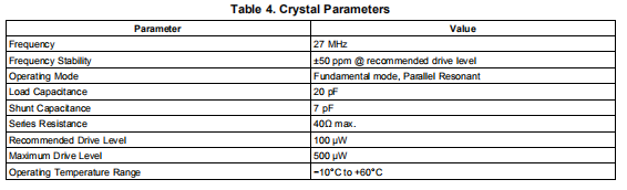 LMH0046使用27 MHz晶体或外部时钟信号作为定时参考输入。27MHz并行谐振晶体和负载网络可连接至XTAL IN/EXT CLK和XTAL OUT引脚。或者,可以将27mhz LVCMOS兼容时钟信号输入到XTAL IN/EXT CLK。a的参数表4给出了合适的晶体。