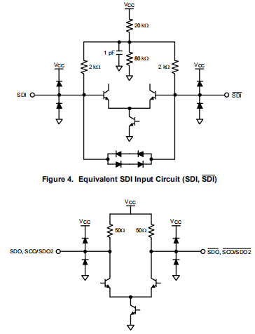 输入SCO_EN使SCO/SDO2差分输出可以作为串行数据速率时钟或秒串行数据输出。SCO/SDO2在SCO峎EN较高时起串行数据速率时钟的作用。这个别针有一个内部下拉装置。默认状态(低)启用SCO/SDO2输出作为第二个串行数据输出。